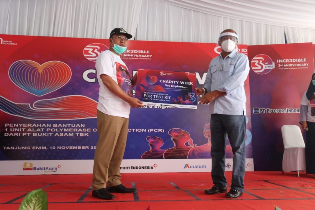 MUARA ENIM, POJOKSUMSEL – MIND ID (Holding BUMN Pertambangan) memasuki usia 3 tahun. PT Bukit Asam (PTBA) Tbk menyalurkan bantuan bangun laboraturium Polymerase Chain Reaction (PCR) untuk Rumah Sakit Bukit Asam Medika (BAM), serta kepada pemda Muara Enim membantu pengadaan PCR.