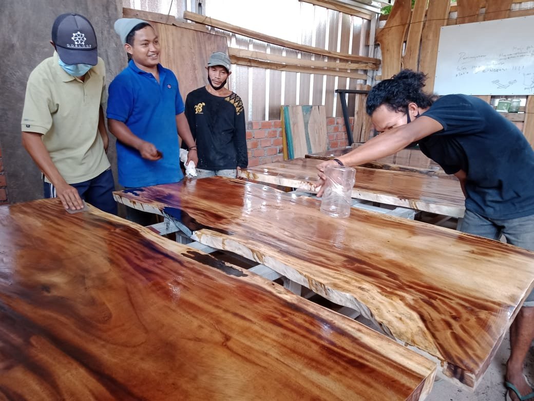 “Meja ini pesanan pak Camat Lawang Kidul, dan juga pesanan pak bupati. Sebelumnya kami menyelesaikan pesanan pak GM dan pejabat PTBA,”ungkap Tono.