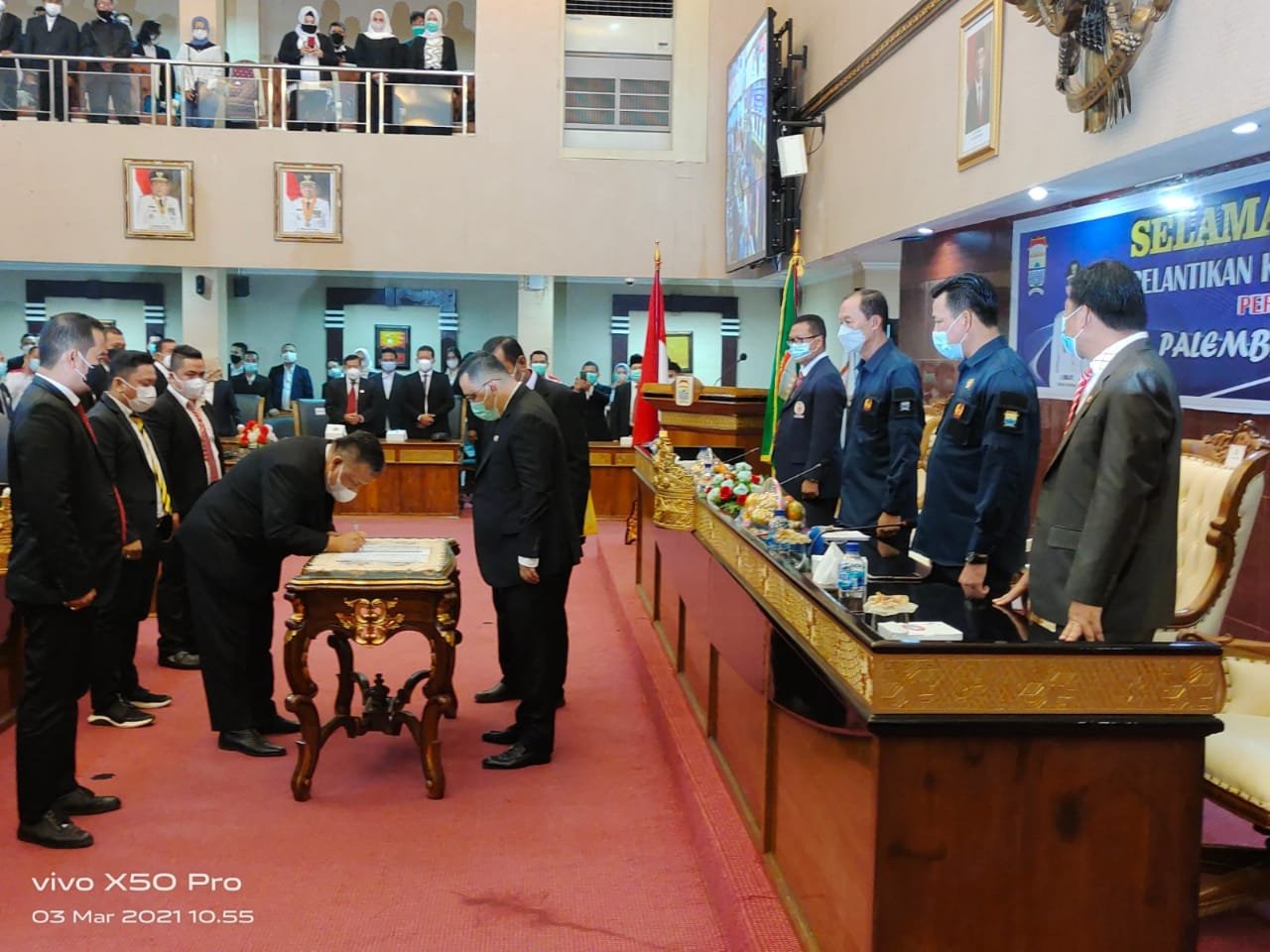 Palembang, Pojoksumsel.com – Pengurus Komite Olahraga Nasional Indonesia (KONI) Kota Palembang masa bakti 2021-2025 resmi dilantik oleh Ketua KONI Sumsel H Hendri Zainuddin di Gedung Parameswara Pemkot, Rabu (3/3/2021).
