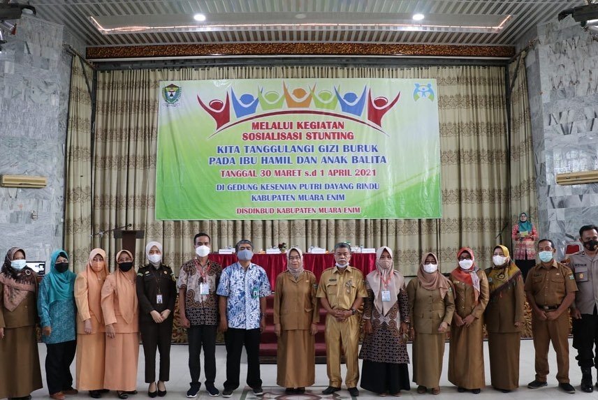 Muara Enim, Pojoksumsel.com – Plh Bupati Muara Enim H Nasrun Umar yang diwakili Asisten III Bidang Administrasi Umum Maryana membuka Sosialisasi Stunting Bagi Satuan PAUD (Pendidikan Anak Usia Dini) dan Paguyuban Orang Tua di Kabupaten Muara Enim tahun 2021, Selasa (29/03) di Gedung Kesenian Putri Dayang Rindu, Kota Muara Enim.