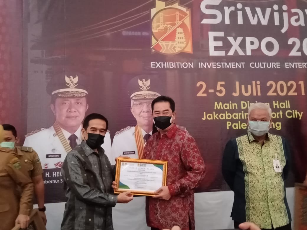 PALEMBANG, POJOKSUMSEL.COM – Penghargaan di berikan kepada Pemerintah Kabupaten Muara Enim yang telah menjadi peserta terbaik pada Even Sriwijaya Expo 2021 tingkat Provinsi Sumatera Selatan yang di selenggarakan dari 2-5 Juli 2021. Stan milik pemerintah Kabupaten Muara Enim meraih juara 1 lomba stan tingkat kabupaten dan kota. Penghargaan itu di terima oleh staf ahli bupati bidang ekonomi, keuangan dan pembangunan, Febriansyah Nang Ali ST MT pada penutupan acara Senin sore (5/7).