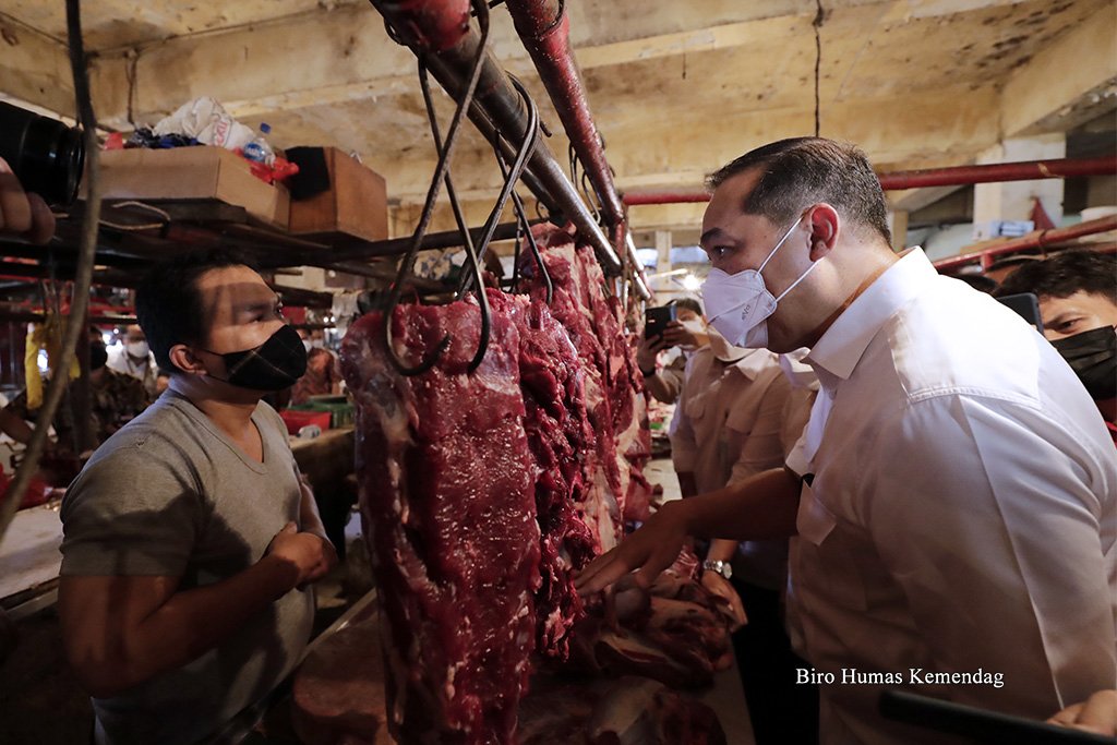 Sementara untuk harga daging sapi, Arief melanjutkan, berdasarkan pantauan di pasar harga daging sapi cenderung mengalami kenaikan dengan kisara Rp130.000,- hingga Rp140.000,- perkilogram. Kenaikan tersebut disebabkan naiknya harga bakalan dari luar negeri. Untuk itu, pasokan daging sapi akan diseimbangkan dengan pasokan beberapa produk lain, seperti daging sapi beku.