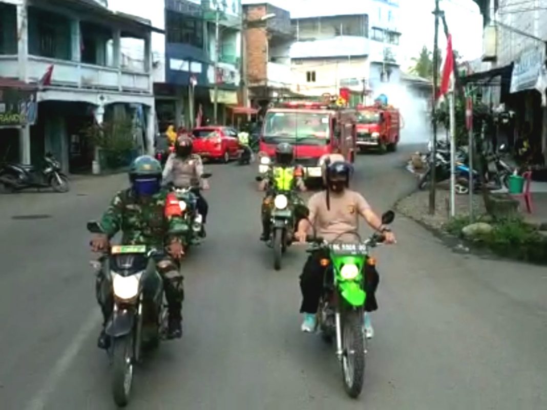 MUARA ENIM, POJOKSUMSEL – Guna memutus mata rantai penyebaran covid19 di Tanjung Enim dan sekitarnya, pada hari Minggu 30 Agustus 2020, PT Bukit Asam Tbk (PTBA) bersama Unsur Tripika Kecamatan Lawang Kidul dan Serikat Pegawai Bukit Asam (SPBA), melakukan penyemprotan disinfektan dan pembagian ribuan masker di Tanjung Enim dan sekitarnya dalam wilayah Kecamatan Lawang Kidul.